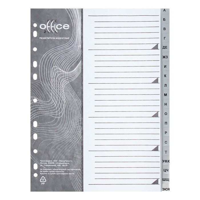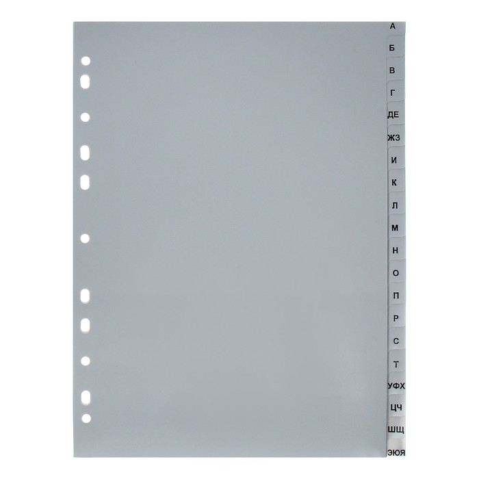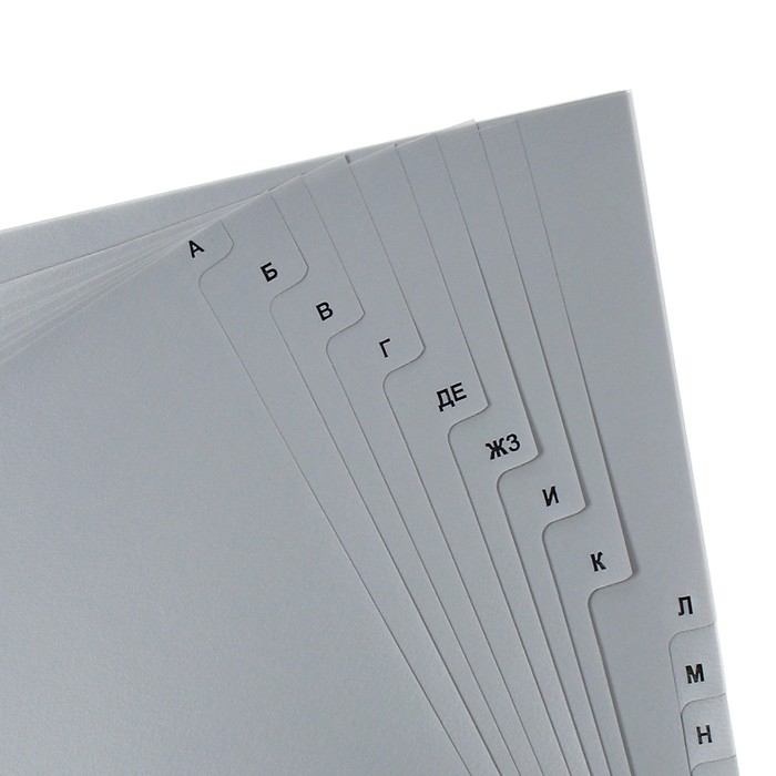 Набор разделителей листов А4 Office-2000, алфавитные А-Я, 20 листов, серые, пластик 120 мкм