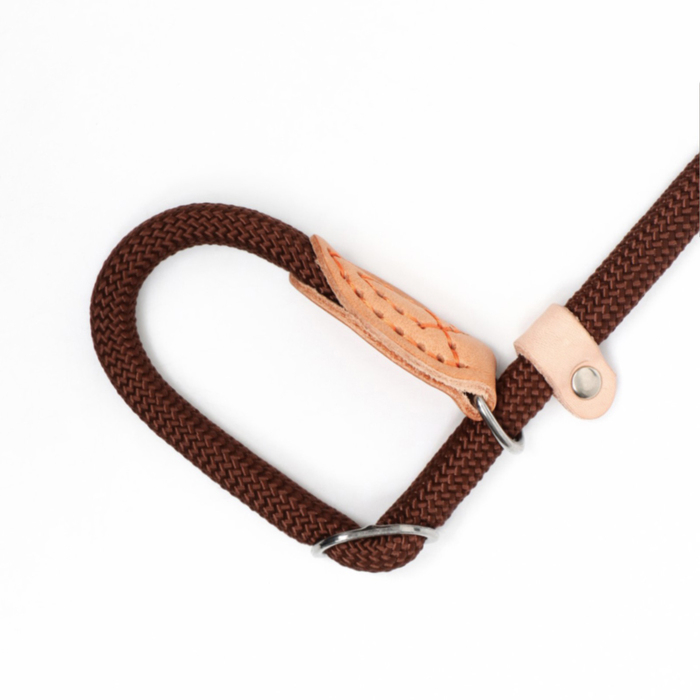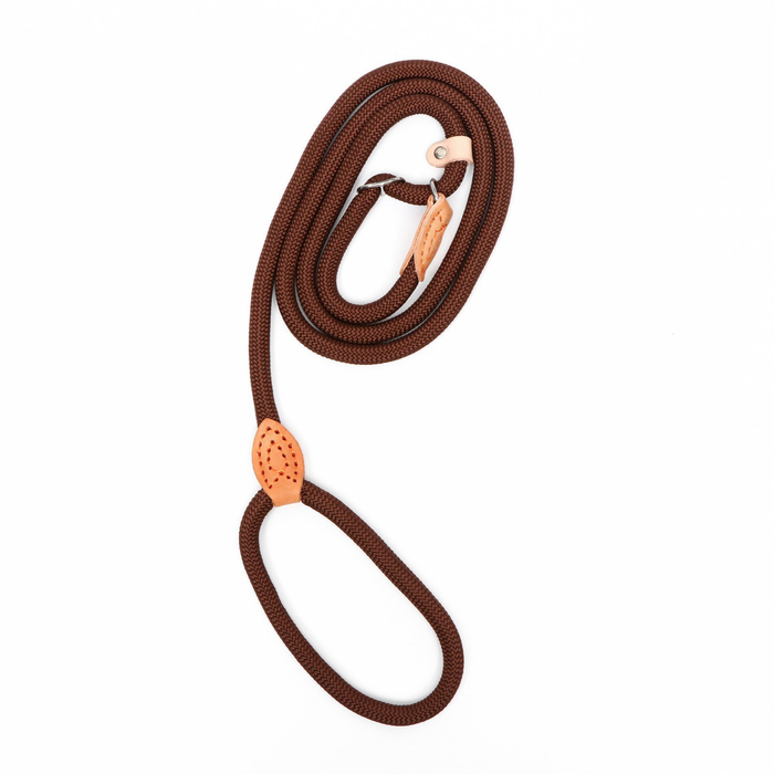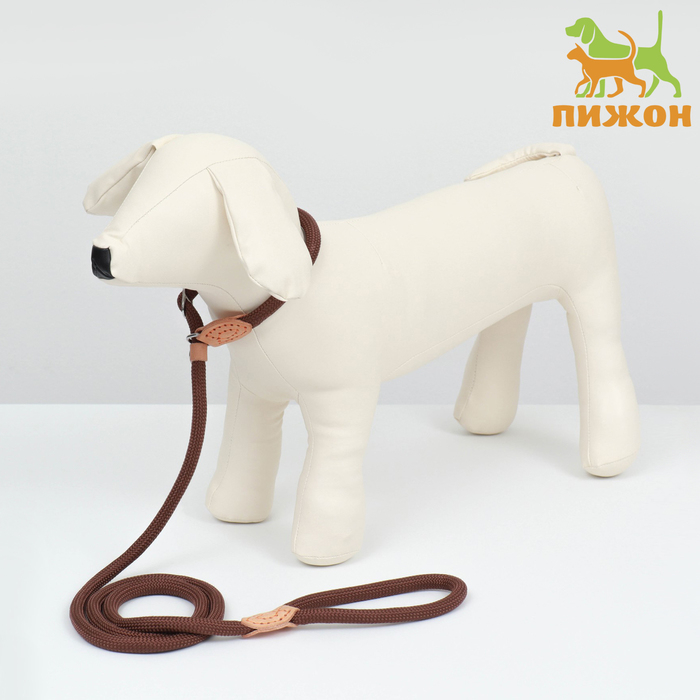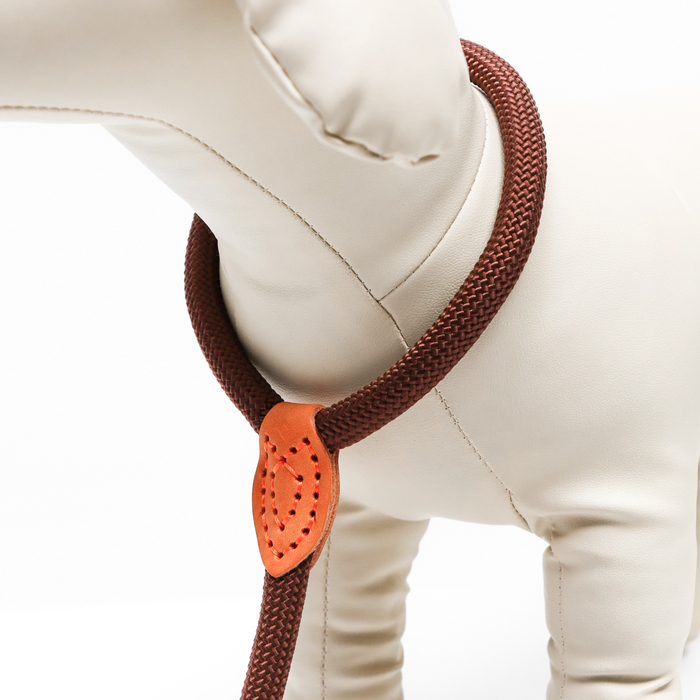 Поводок-удавка 150 х 1,2 см, полиэстер и натуральная кожа, коричневый