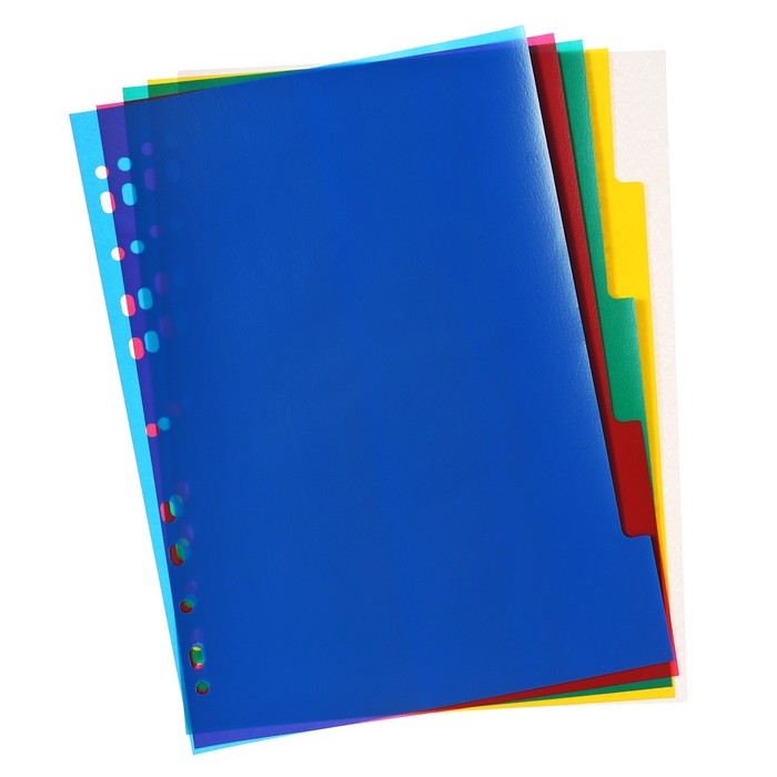 Набор разделителей листов А4 Office-2000, 5 листов без индексации, цветные, пластик 120 мкм