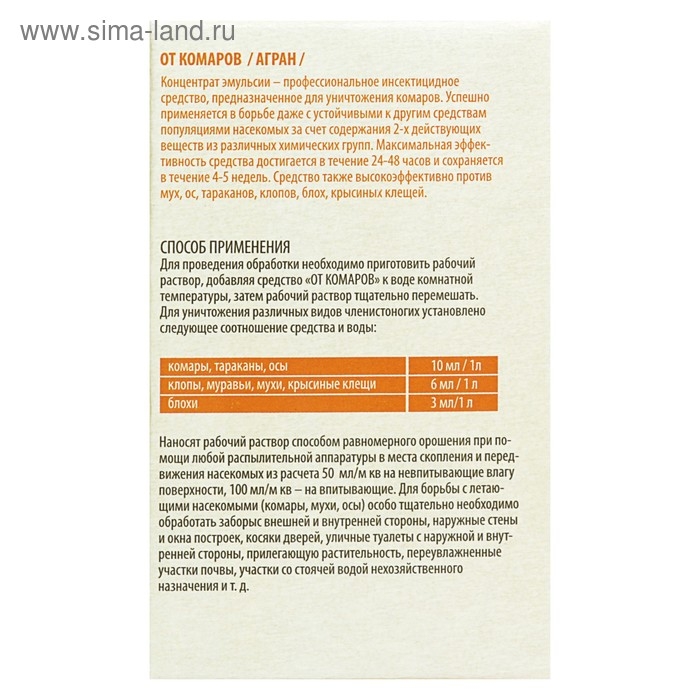 Назначение: для уничтожения комаров, мух, тараканов, клопов, блох, муравьёв, ос, крысиных клещей внутри и вне помещений.