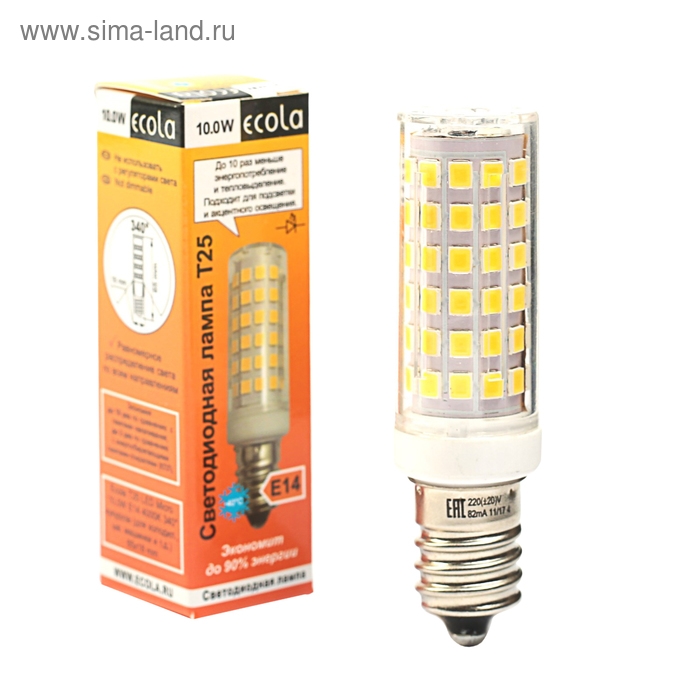 Лампа светодиодная Ecola, E14, T25, 10 Вт, 4000 K, 340°, для холодильников и швейных машин