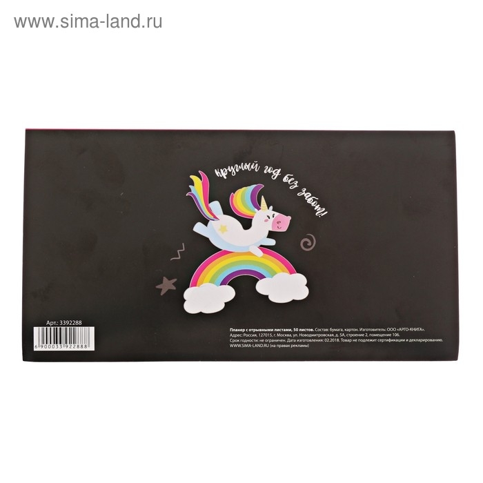 Планер с отрывными листами «Единорог», 9,5 × 17,5 см, 50 листов