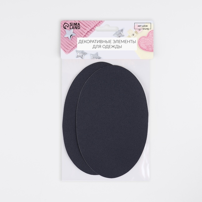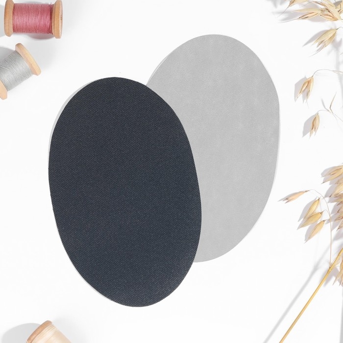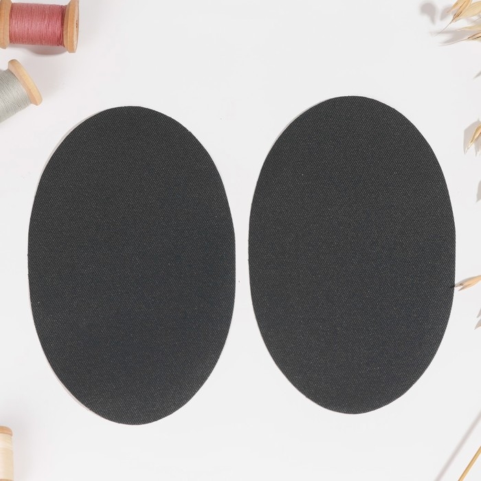 Заплатки для одежды, 15,5 × 9,5 см, термоклеевые, пара, цвет тёмно-серый