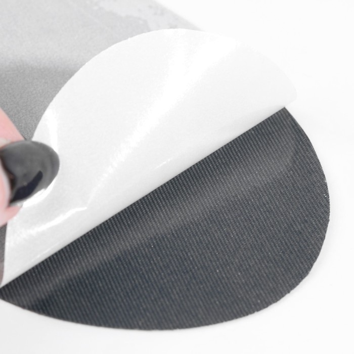 - Положите заплатку на ткань лицевой (матовой) стороной к себе.