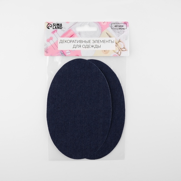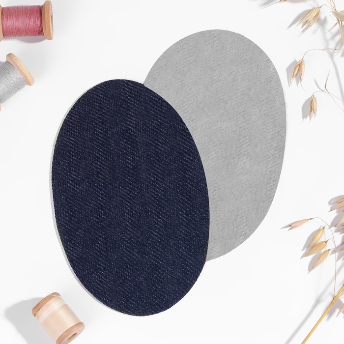 Заплатки для одежды, 15,5 × 9,5 см, термоклеевые, пара, цвет синий джинс