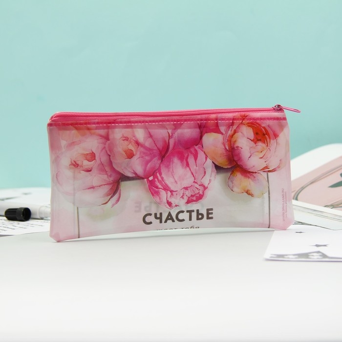 Пенал мягкий 1 отделение, 95 х 205 мм, плоский, ПВХ, Calligrata "Счастье ждет тебя"