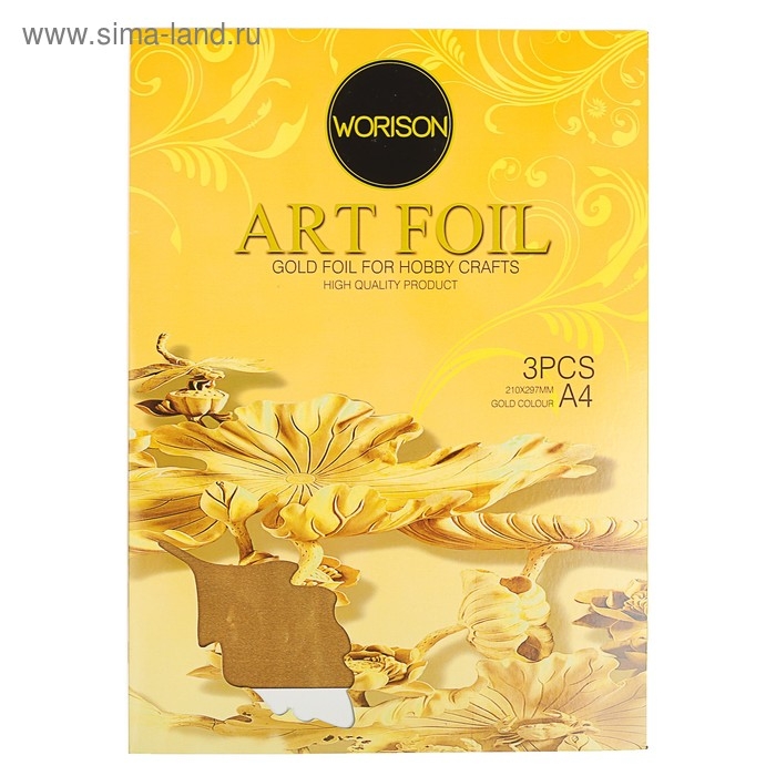 Фольга А4, 3 листа, золотая, для чеканки, в папке