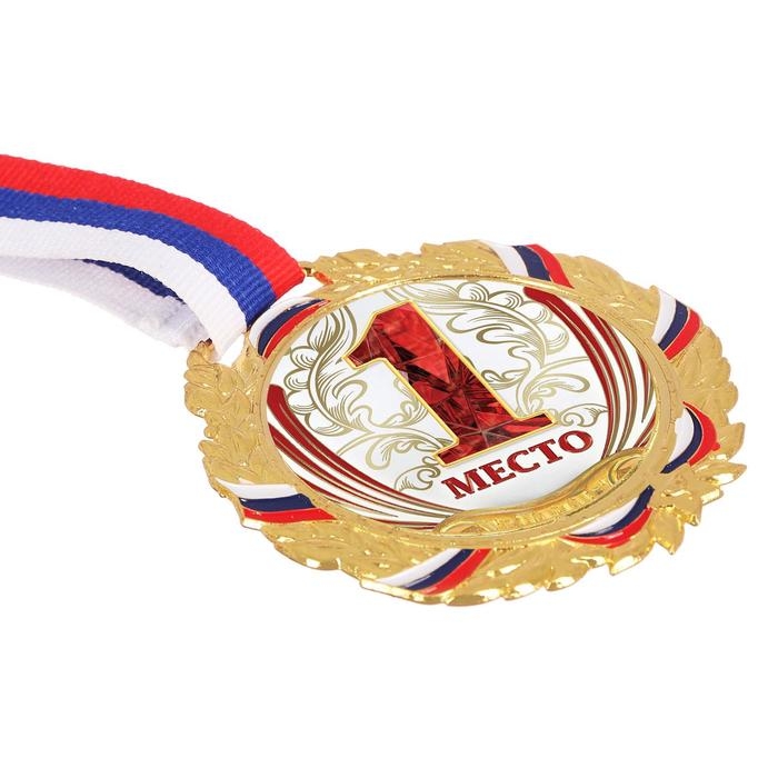 Медаль призовая 013, d= 5 см. 1 место, триколор. Цвет золото. С лентой