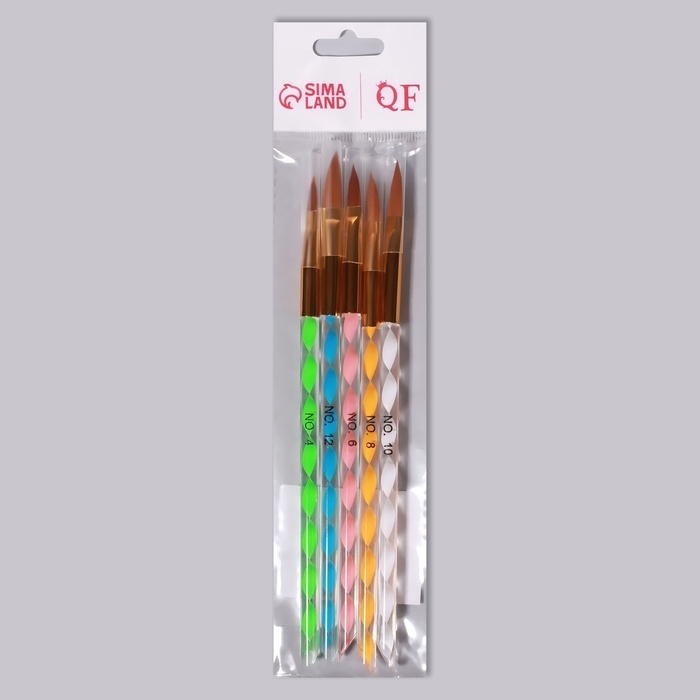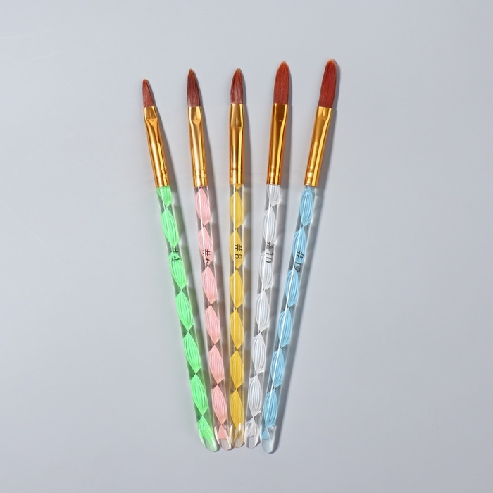 Набор кистей для наращивания и дизайна ногтей «Лепесток», 5 шт, 17 см, №4/6/8/10/12, разноцветный