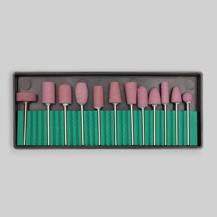 Фрезы корундовые для маникюра в пластиковом органайзере, 12 шт