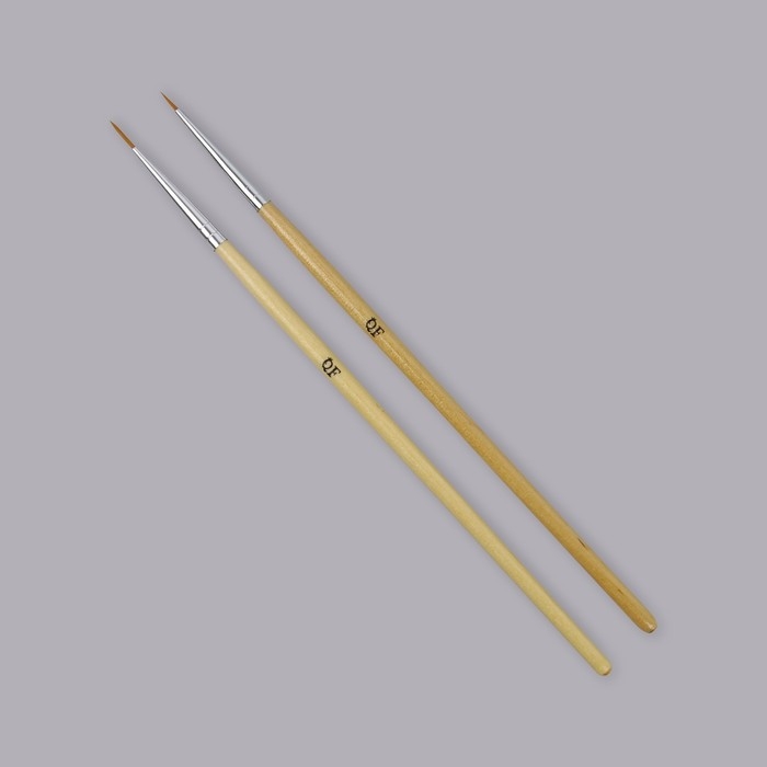 Для создания различных дизайнов используются специальные кисти для рисования на ногтях, отличающиеся формой, длиной и жесткостью ворса. Кисточка служит для выполнения мелкого рисунка. Краска набирается на кончик, и кисть идёт практически перпендикулярно поверхности.