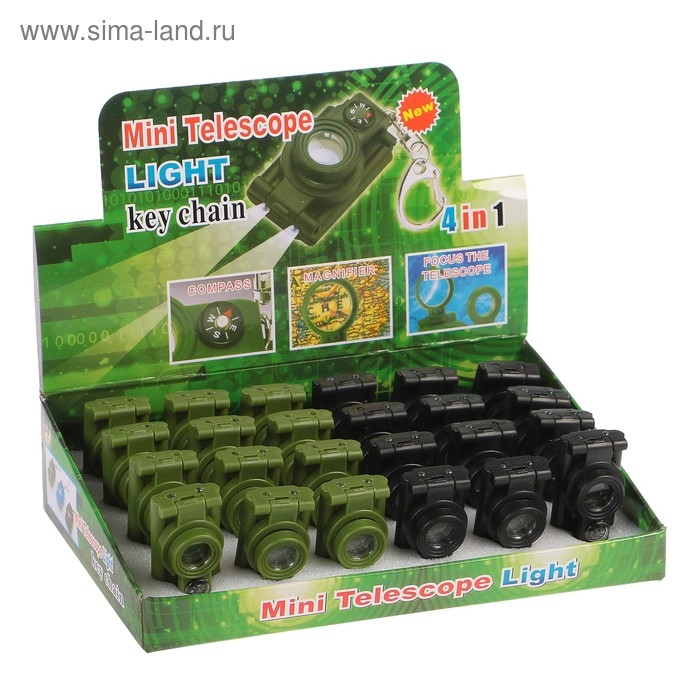 Лупа-брелок, 5х, d=2см, с компасом и фонариком, 2 диода, шоубокс, микс