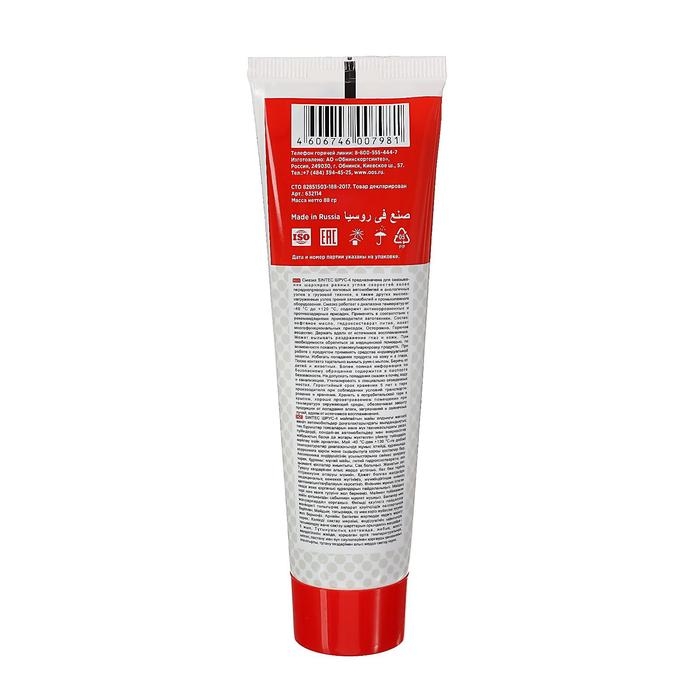 Смазка Sintec ШРУС-4 изготавливается путем загущения смеси высококачественных нефтяных масел литиевым мылом 12-гидроксистеариновой кислоты с добавлением пакетов присадок, обеспечивающих высокие антифрикционные, антикоррозионные и антиокислительные свойства. Содержит дисульфид молибдена МoS2 и наполнитель PTFE.
