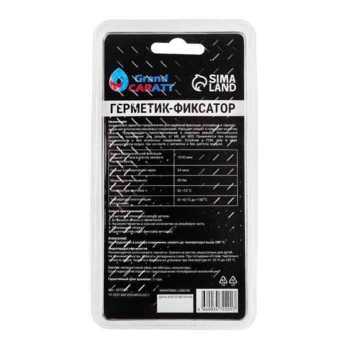 Герметик фиксатор Grand Caratt, неразъёмный, быстрой фиксации, 6 г