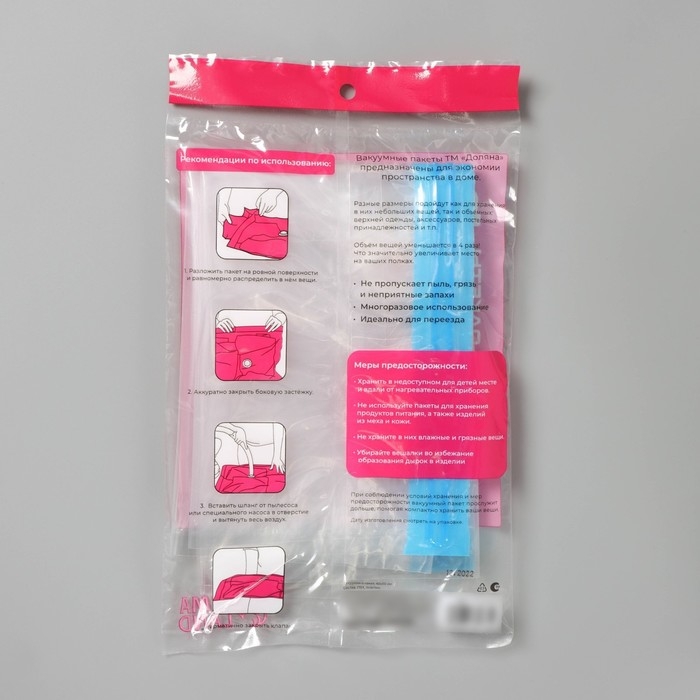 - Не храните в таких пакетах еду, кожаные и меховые изделия.