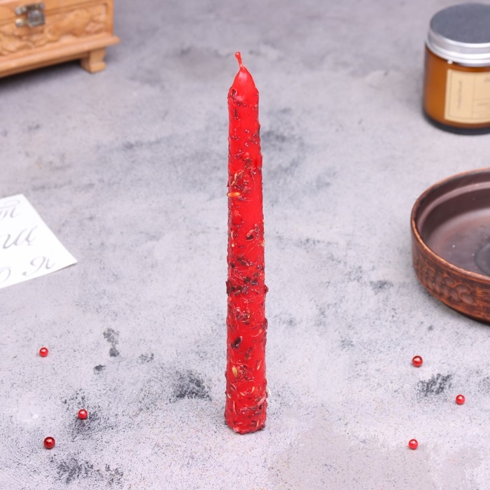 Свеча магическая "Любовная магия" с травой, красная, 20см