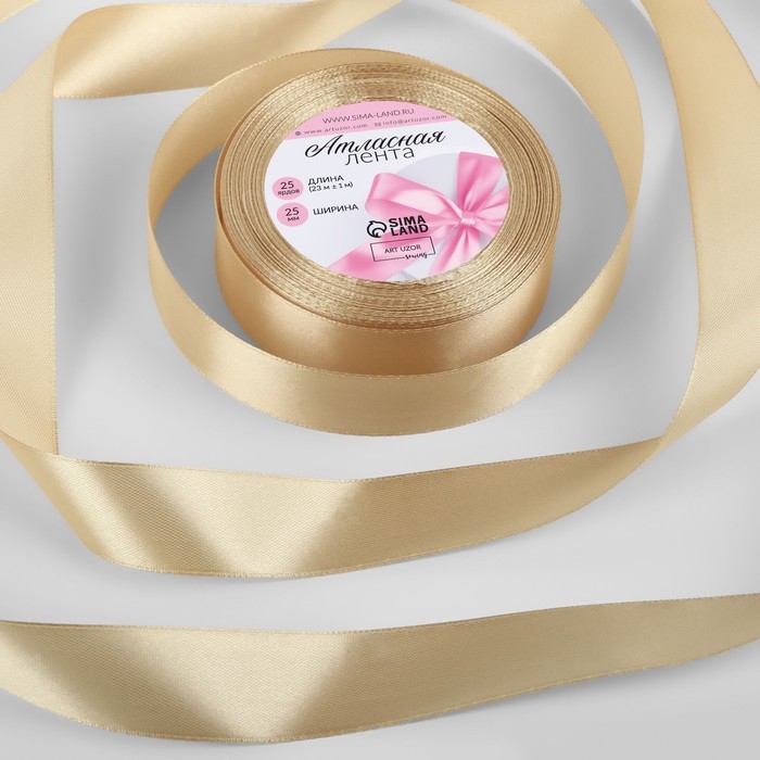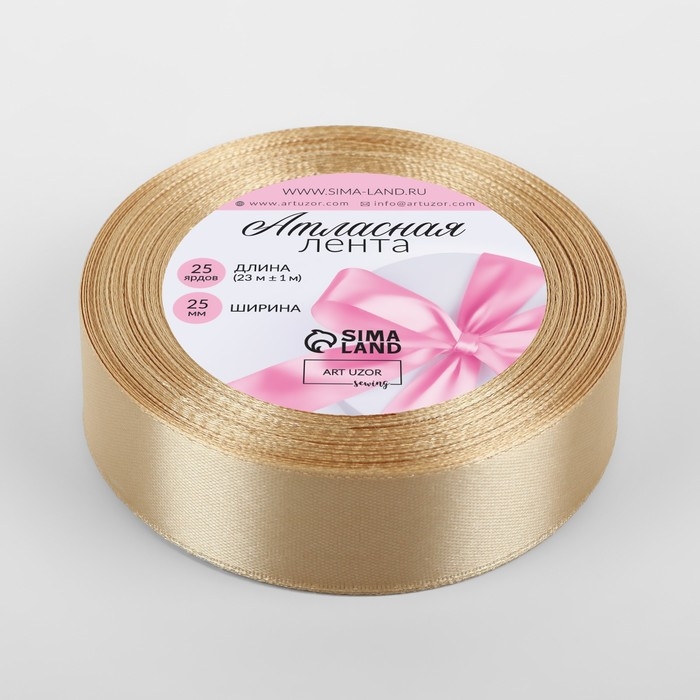 Лента атласная, 25 мм × 23 ± 1 м, цвет шампань №123