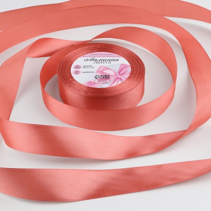 Лента атласная, 25 мм × 33 ± 2 м, цвет розовый №005