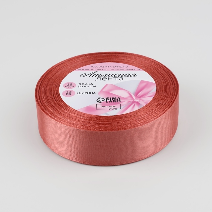 Лента атласная, 25 мм × 23 ± 1 м, цвет розовый антик №102