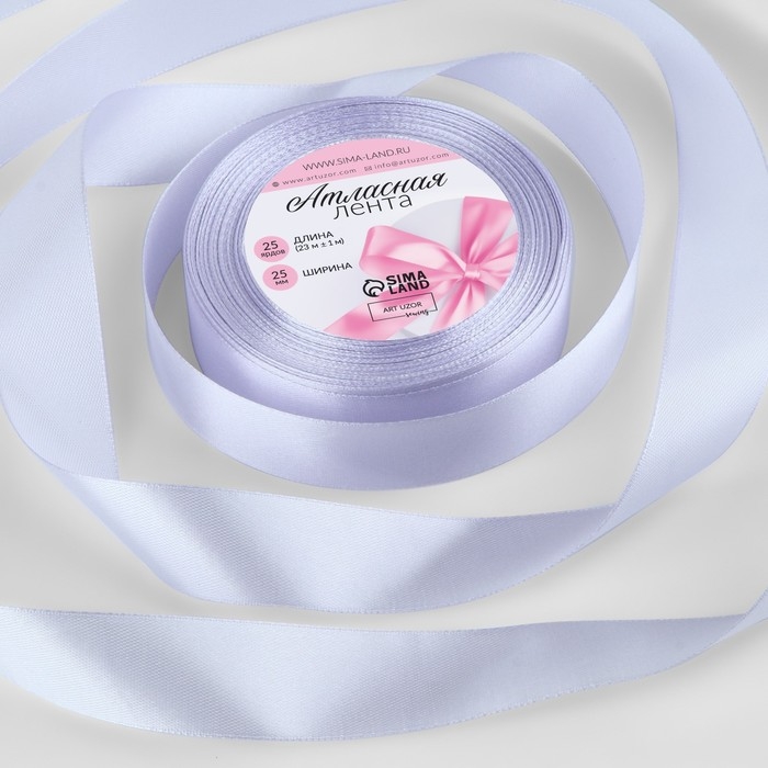 Лента атласная, 25 мм × 23 ± 1 м, цвет светло-сиреневый №290