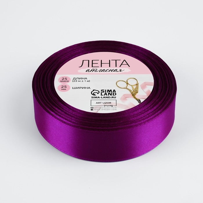 Лента атласная, 25 мм × 23 ± 1 м, цвет пурпурный №29