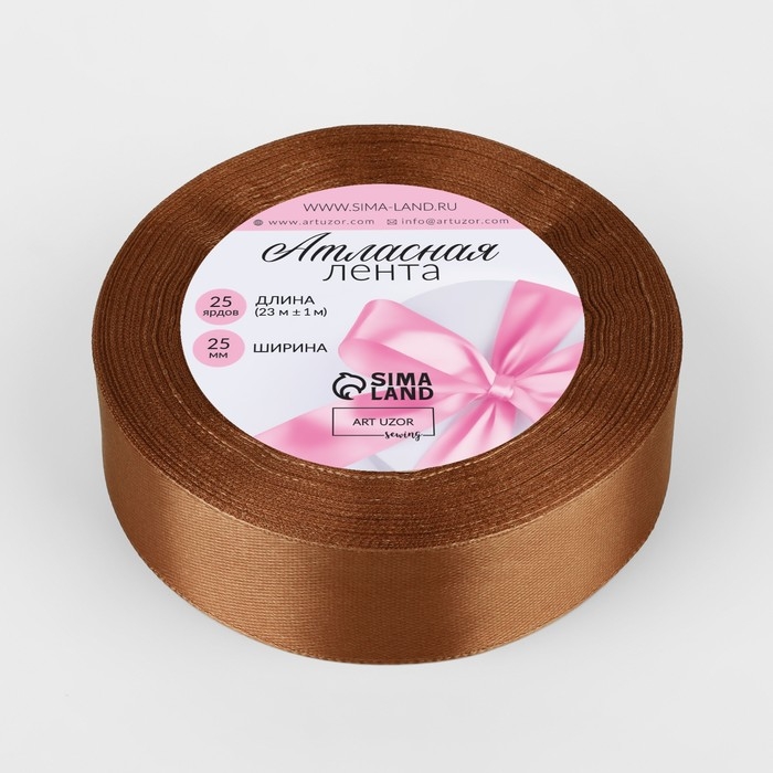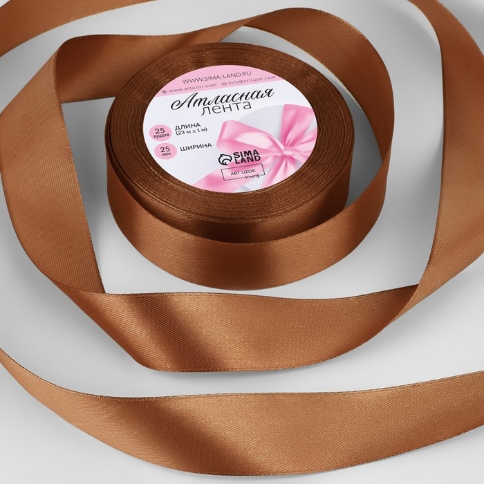 Лента атласная, 25 мм × 23 ± 1 м, цвет коричневый №142
