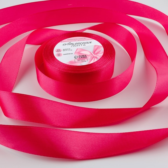 Лента атласная, 25 мм × 23 ± 1 м, цвет ярко-малиновый №28