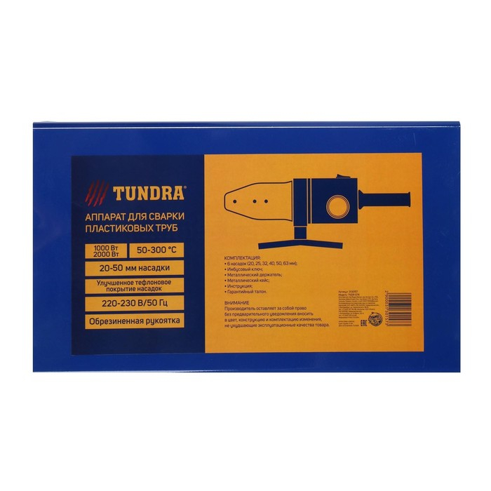 Аппарат для сварки пластиковых труб ТУНДРА, 1000/2000 Вт, комплект насадок 20-50 мм, 50-300°