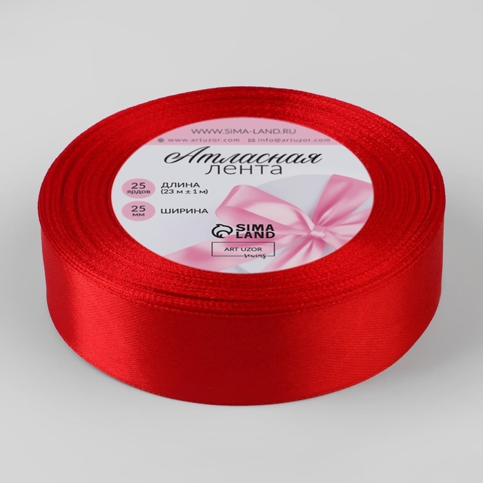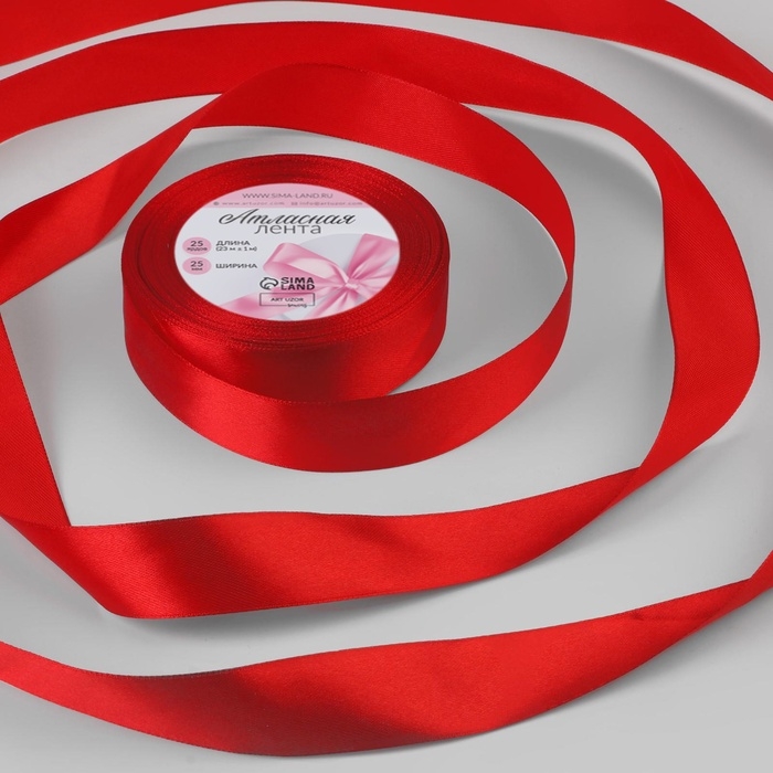 Лента атласная, 25 мм × 23 ± 1 м, цвет красный №26