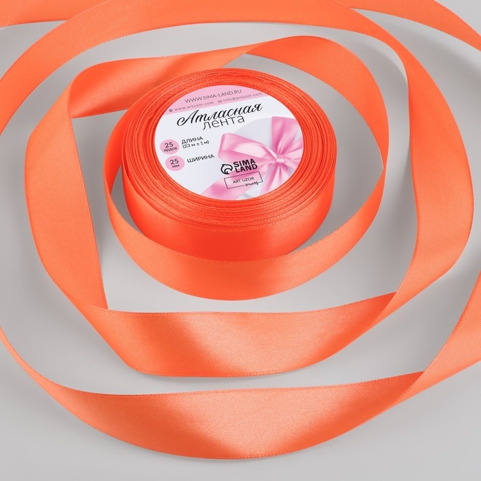 Лента атласная, 25 мм × 23 ± 1 м, цвет оранжевый №22