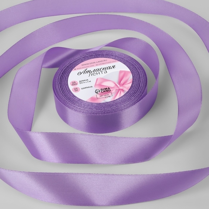 Лента атласная, 25 мм × 23 ± 1 м, цвет сиреневый №21