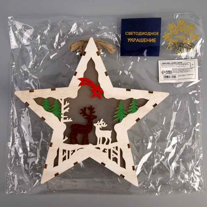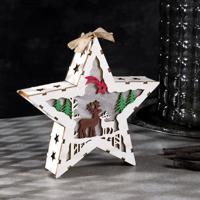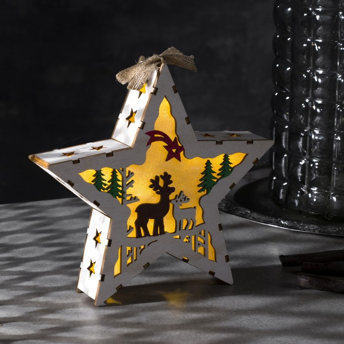 Светодиодная фигура «Звезда с оленями» 19 × 19 × 4 см, дерево, батарейки АААх2 (не в комплекте), свечение тёплое белое