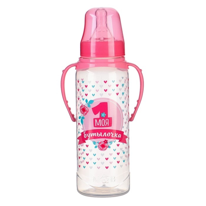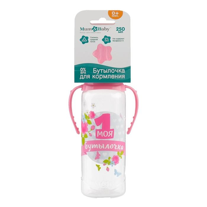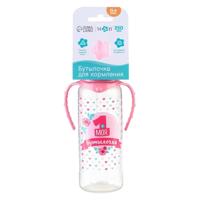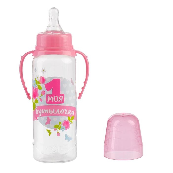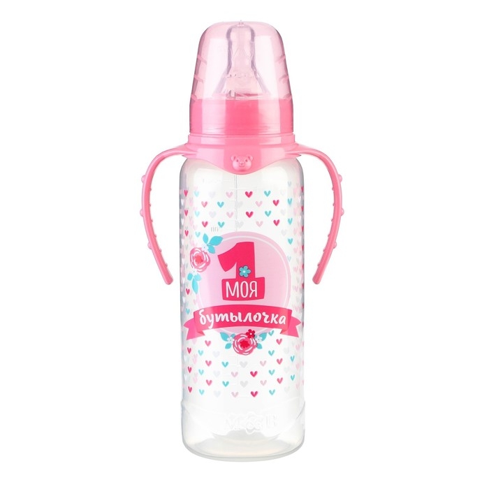Бутылочка для кормления «Моя первая бутылочка», классическое горло, с ручками, 250 мл., от 0 мес., цвет розовый