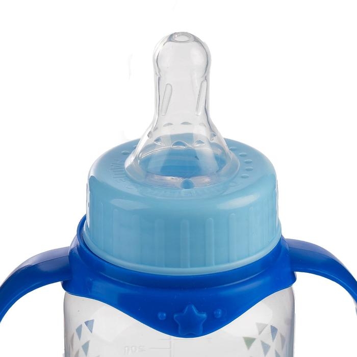 Бутылочка для кормления «Моя первая бутылочка», классическое горло, с ручками, 250 мл., от 0 мес., цвет синий