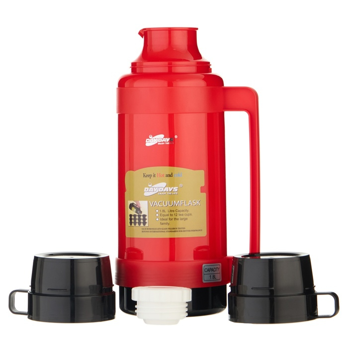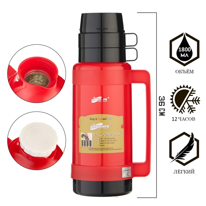 Термос 1.8 л, со стеклянной колбой, 12 х 36 см, красный