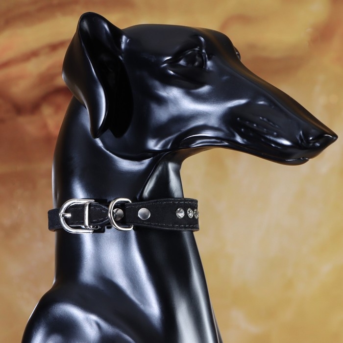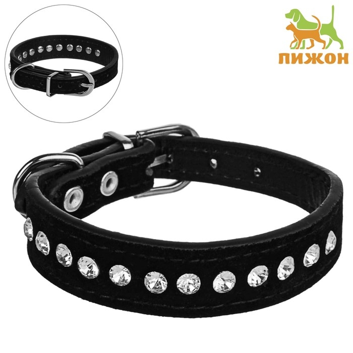 Ошейник "Бархат и стразы", 31 х 1,3/2 см, ОШ 22-28 см, чёрный