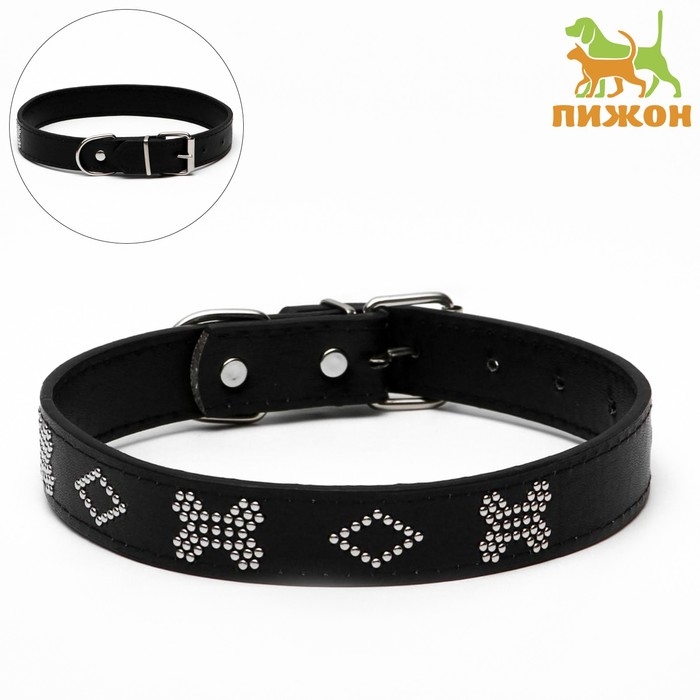 Ошейник "Косточки" морозостойкий украшенный, 52 х 2,5 см, ОШ 37-47 см, чёрный