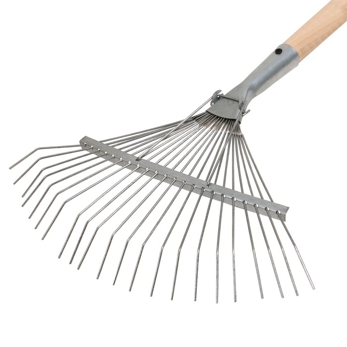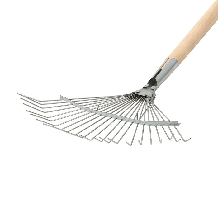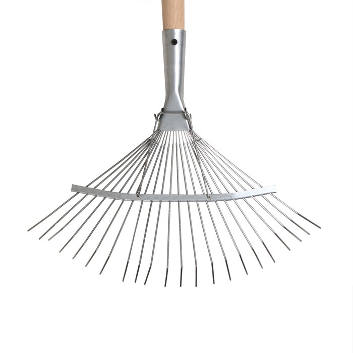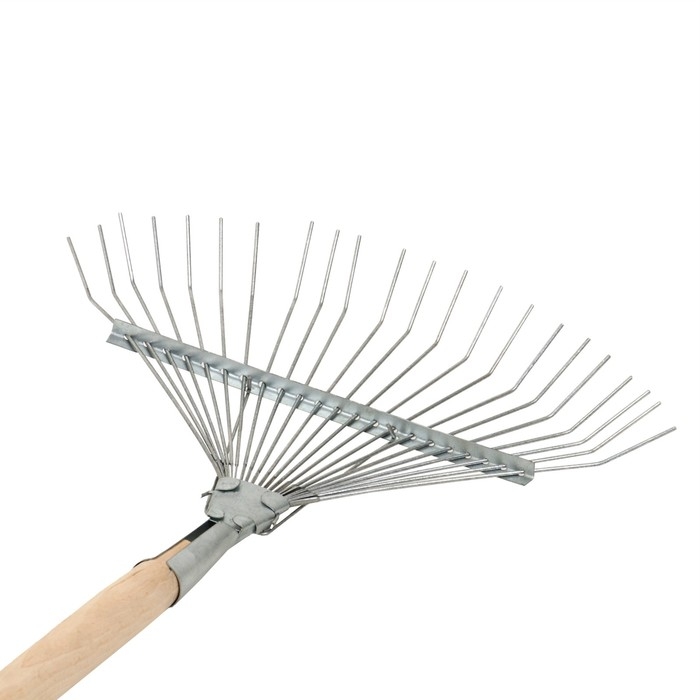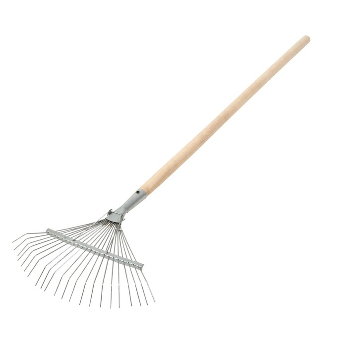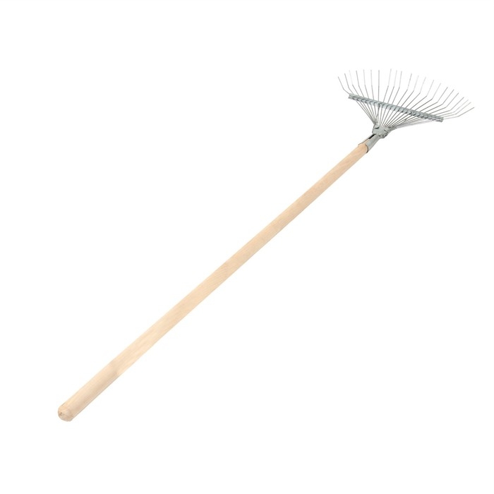 Грабли веерные, проволочные, 22 зубца, оцинкованные, деревянный черенок