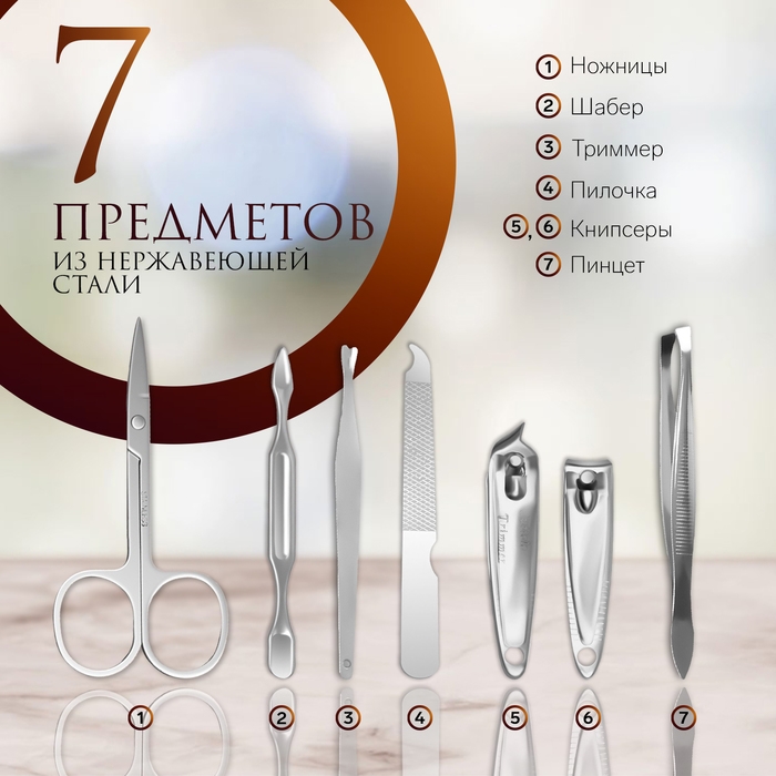 Книпсер, Ножницы, Пилка, Пинцет, Пушер, Триммер