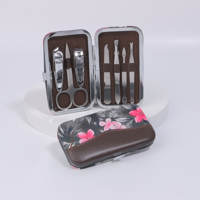 Набор маникюрный «Цветы», 7 предметов, в футляре, цвет МИКС