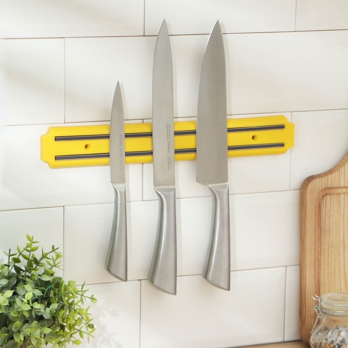 Держатель для ножей магнитный Доляна «Цветная линия», 33 см, цвет жёлтый