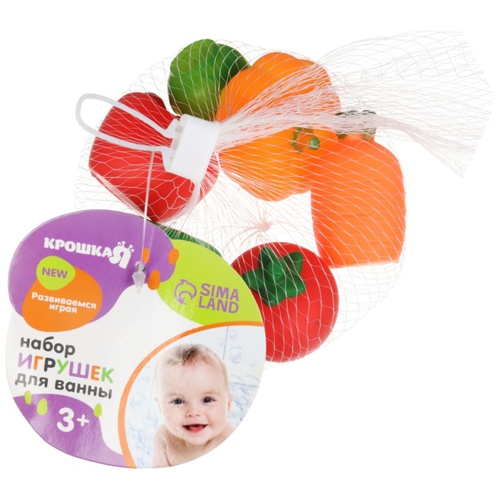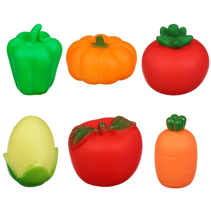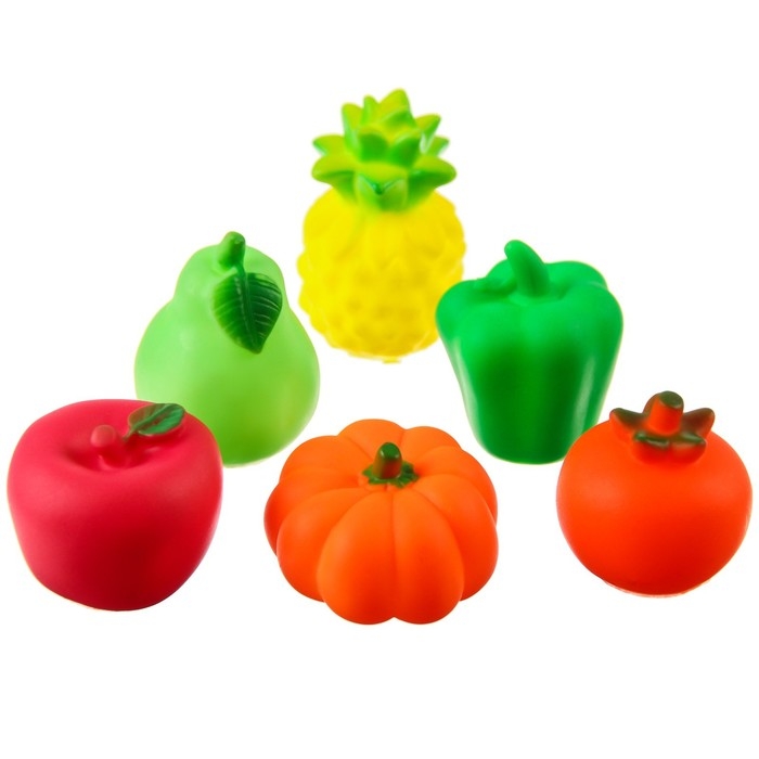 Набор резиновых игрушек для ванны «Овощи-Фрукты», с пищалкой, 6 шт, виды МИКС, Крошка Я