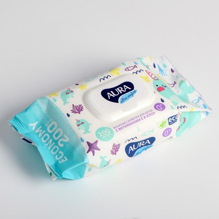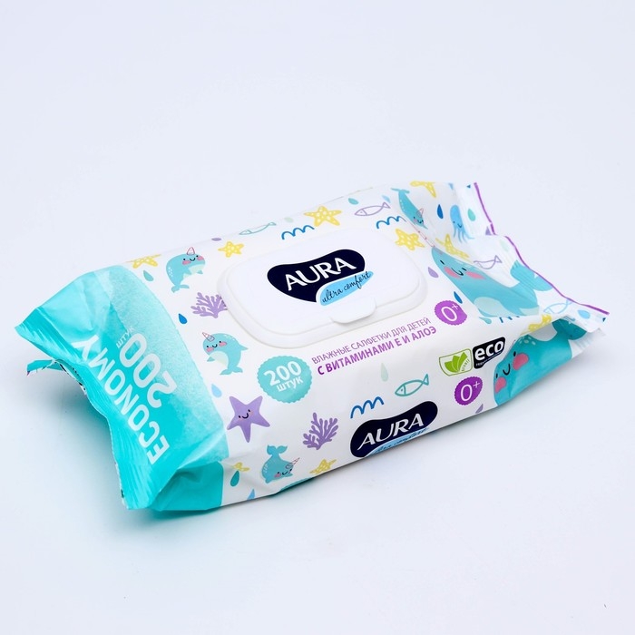 Влажные салфетки Aura Ultra Comfort, для детей, 200 шт.