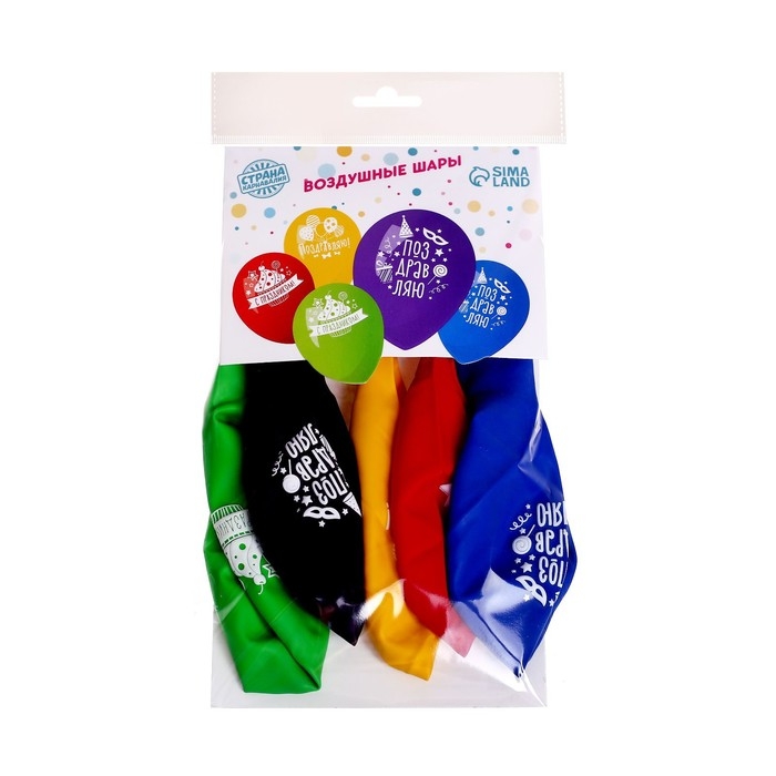 Воздушный шар латексный 12" "Поздравляю", пастель, 5 шт., МИКС