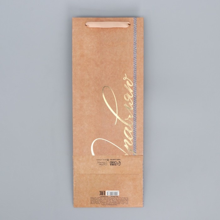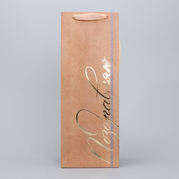 Пакет подарочный крафтовый под бутылку, упаковка, «#Поздравляю», 12 х 36 х 10 см