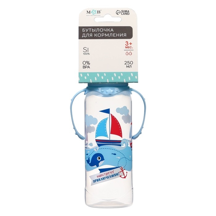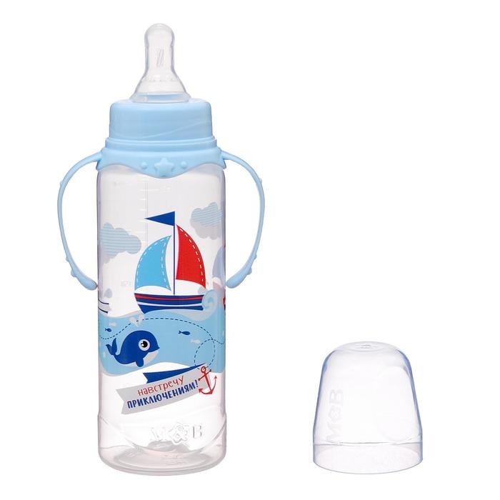 Бутылочка для кормления «Морское приключение», классическое горло, с ручками, 250 мл., от 3 мес., цвет голубой