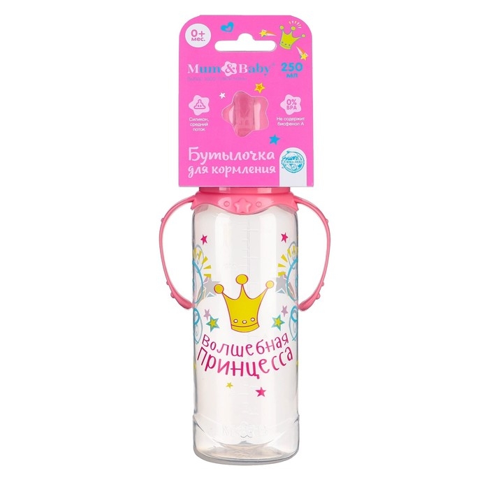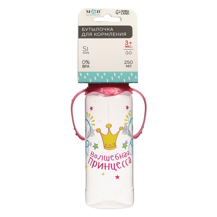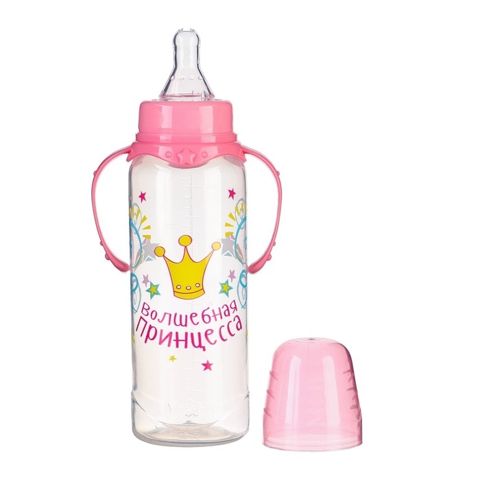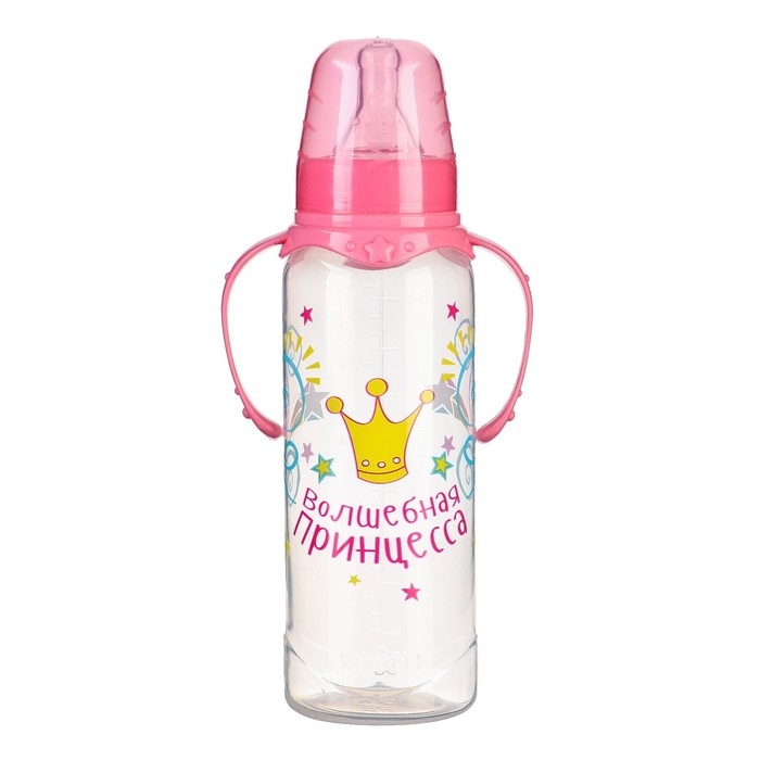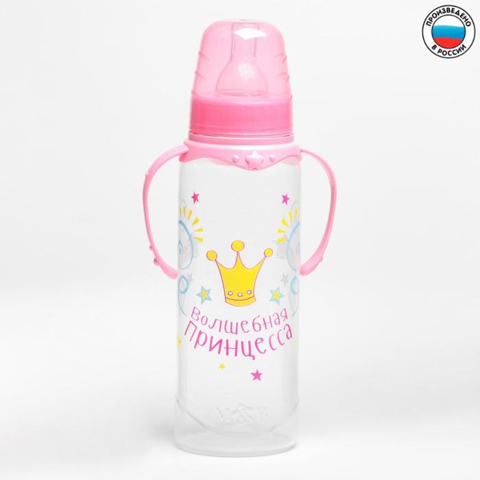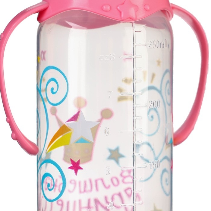 Бутылочка для кормления «Принцесса», классическое горло, 250 мл., от 3 мес, с ручками, цвет розовый