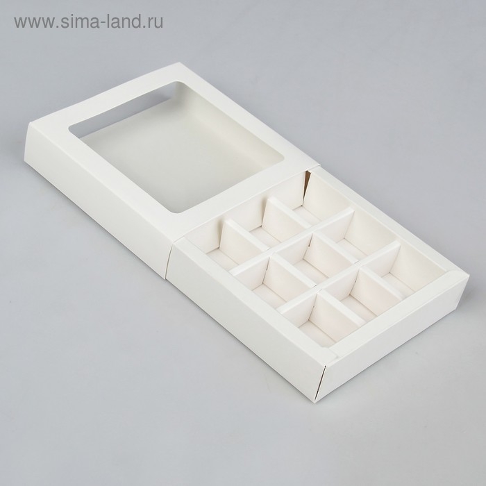 Коробка под 8 конфет + шоколад, с окном, белая, 17 х 5 х 17,5 х 3,7 см