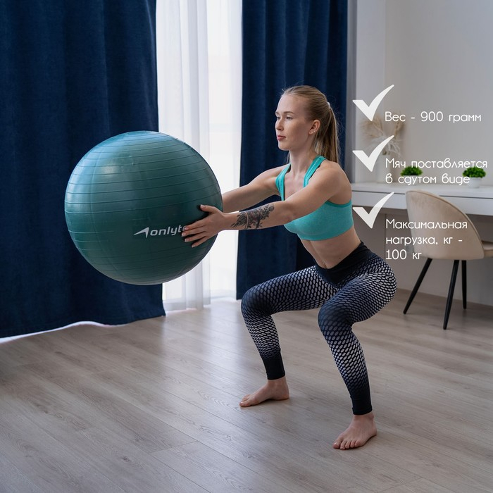 Фитбол ONLYTOP, d=65 см, 900 г, антивзрыв, цвет зелёный