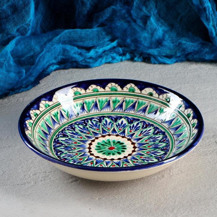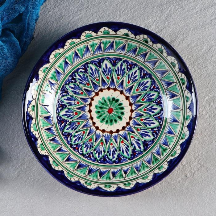 Тарелка Риштанская Керамика "Узоры", синяя, глубокая, микс, 20 см